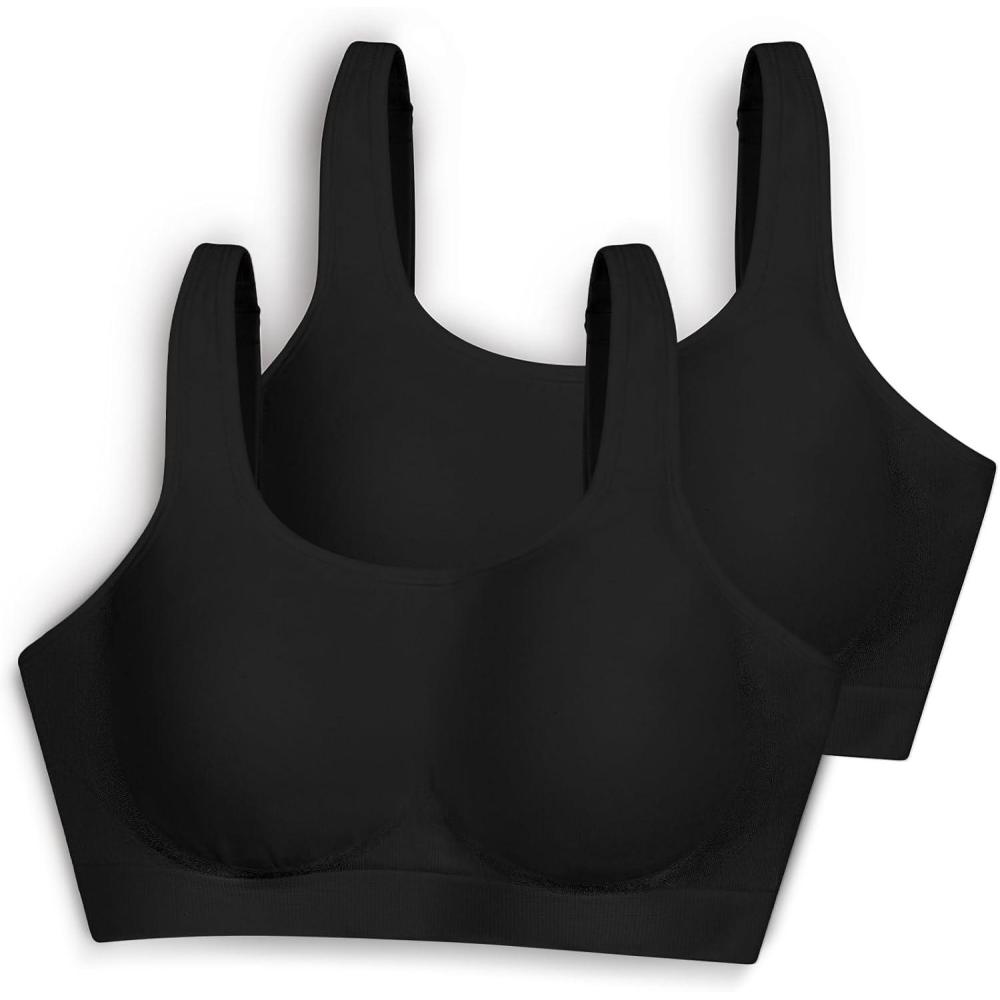 SHAPERMINT Bras for Women No Underwire - Seamless Bras for Women, Wireless Bra, Adjustable Plus Size Bra(Black 2 Pack)