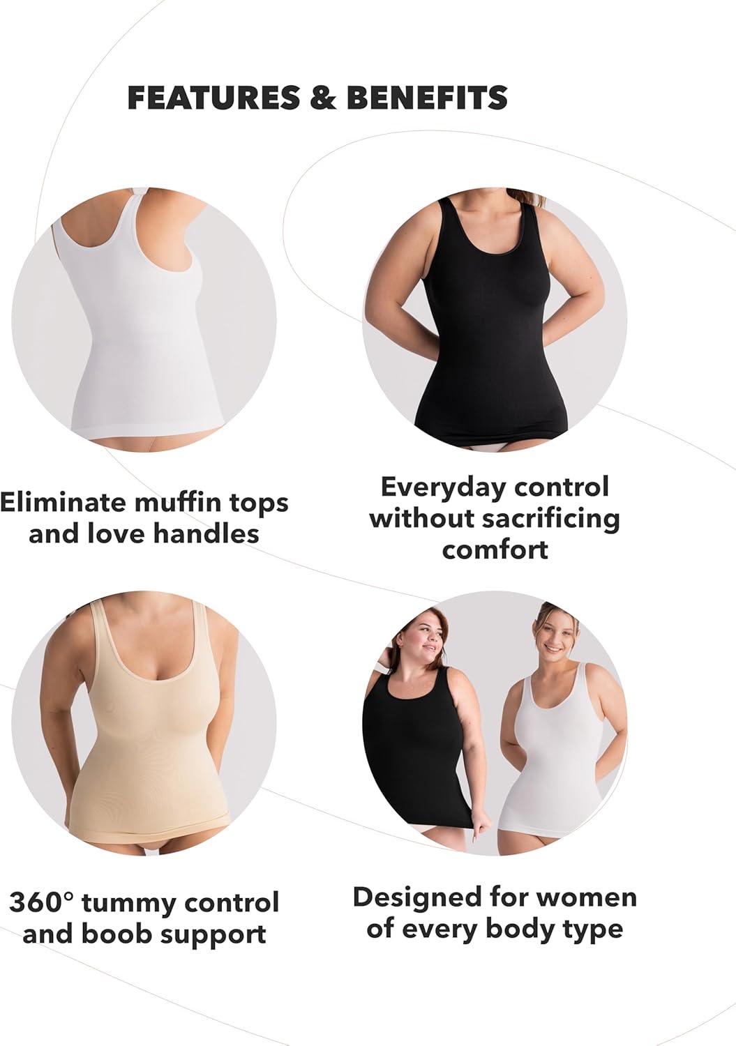 SHAPERMINT Compression Tank Cami - Tummy and Waist Control Body Shapewear Camisole for Women(Black)