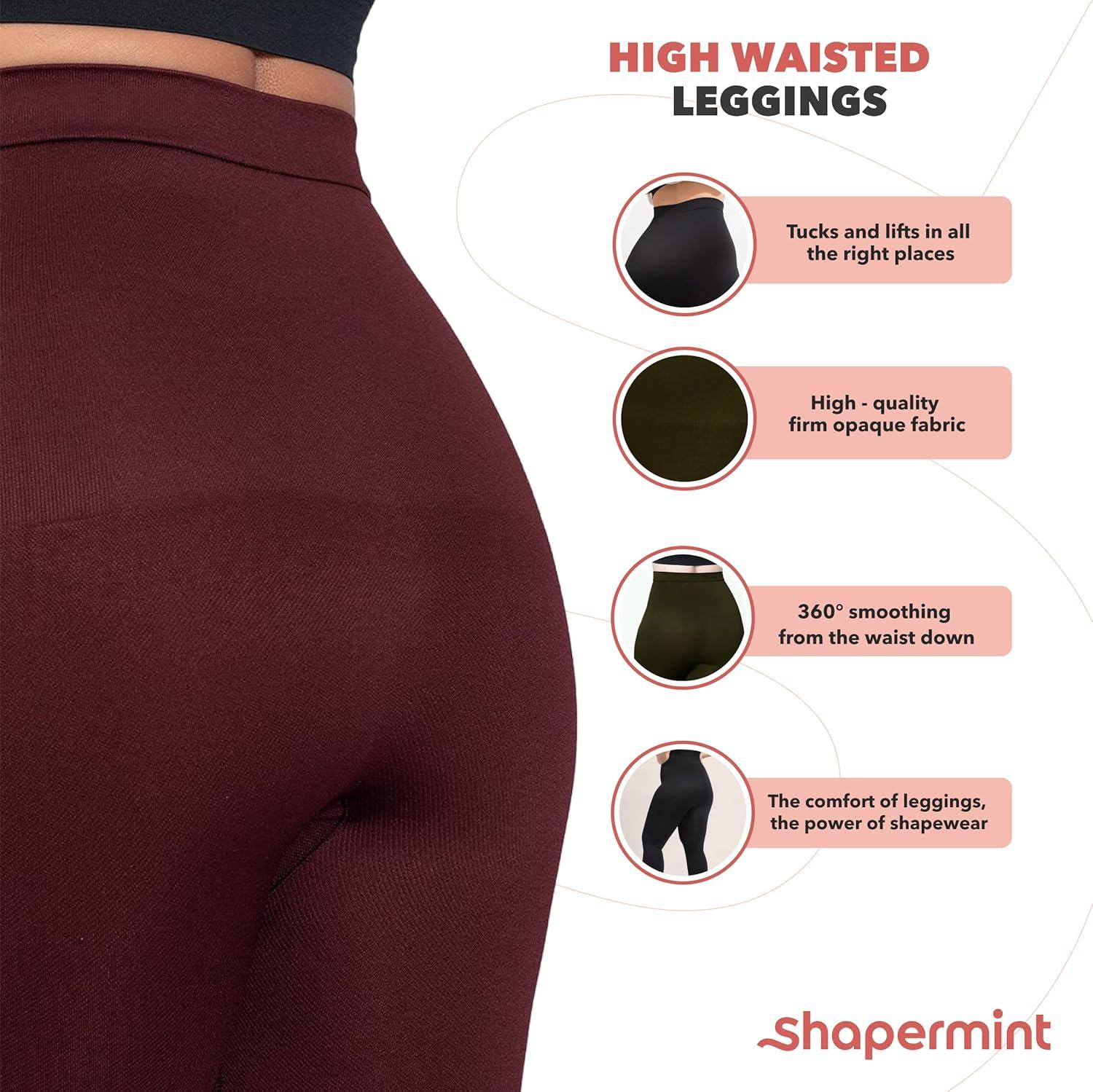 SHAPERMINT Leggings for Women Tummy Control – High Waisted Shapewear Leggings, Womens Plus Size, Thick Non-See-Through(Black)