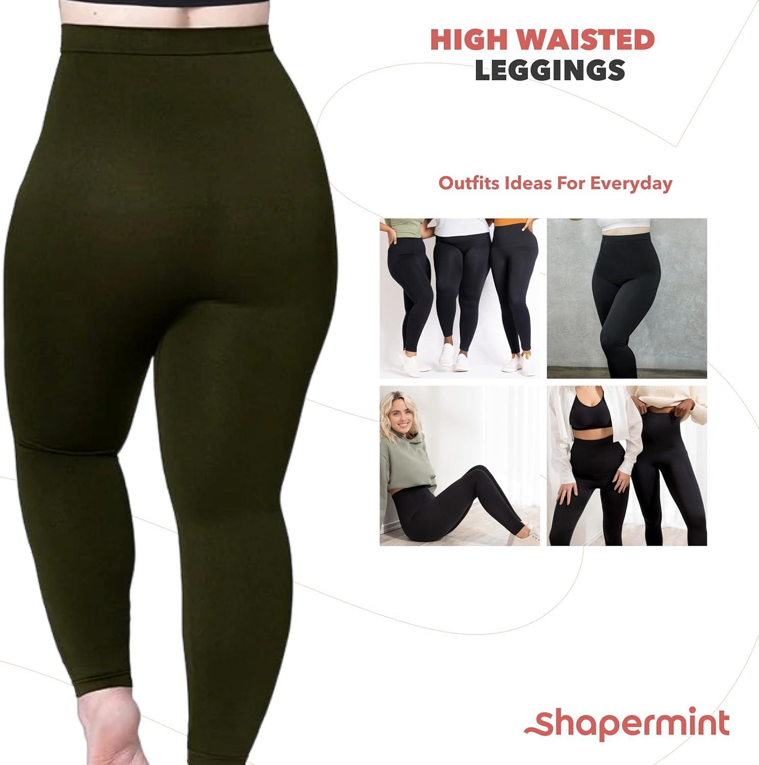 SHAPERMINT Leggings for Women Tummy Control – High Waisted Shapewear Leggings, Womens Plus Size, Thick Non-See-Through(Olive)