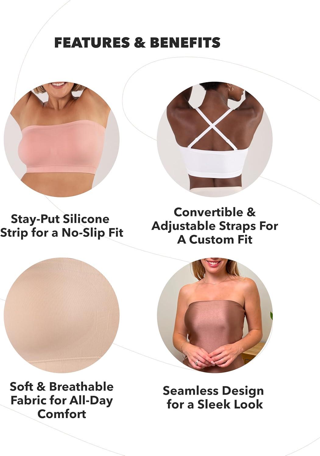 SHAPERMINT Strapless Bra – Bandeau top, Strapless Bras for Women, Plus Size Lingerie for Women, Free Clear Bra Straps(Black)